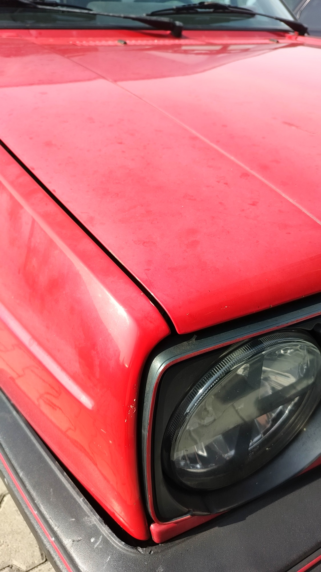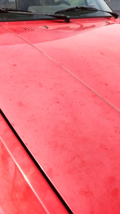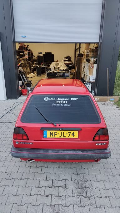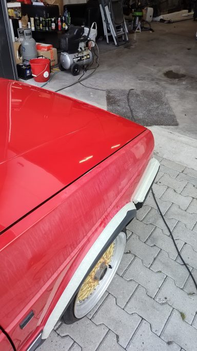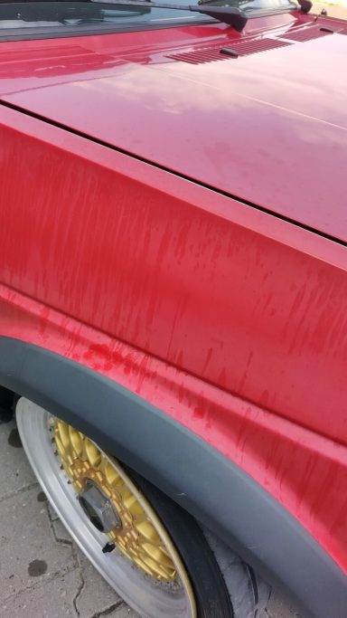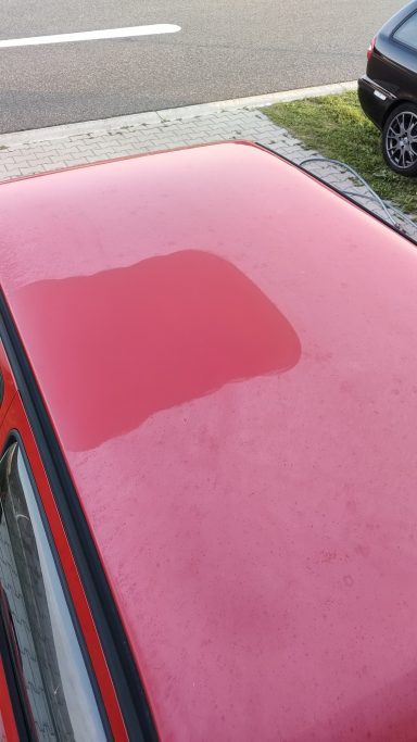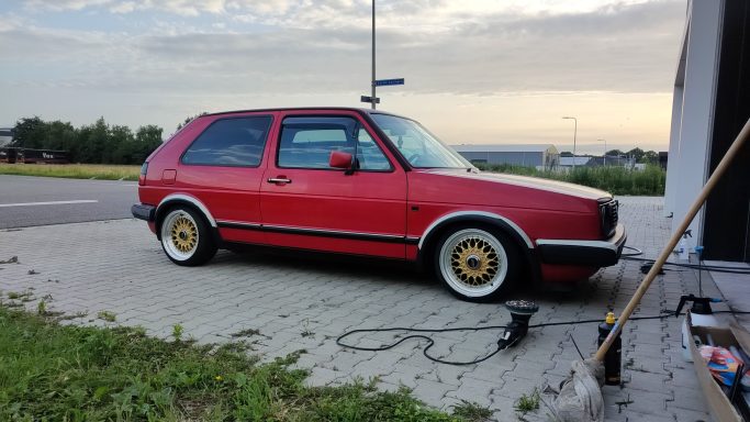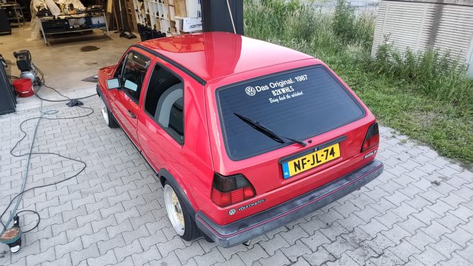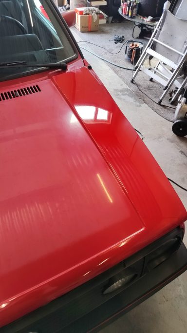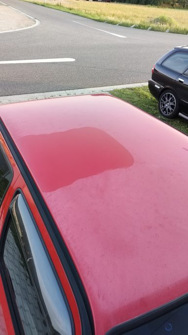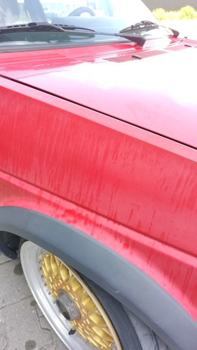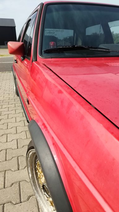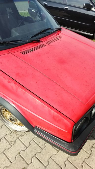 Zwaar geoxideerd, verwaarloosd en na een jaar onder een boom te hebben gestaan werd deze Golf Mk2 bij mij gebracht. Op een paar plekken had een vorige eigenaar door de lak heen gepolijst op de randen, iets wat helaas vaak gebeurd als men niet weet hoe dik de lak is en hoe je het beste gebruik maakt van het gereedschap.
