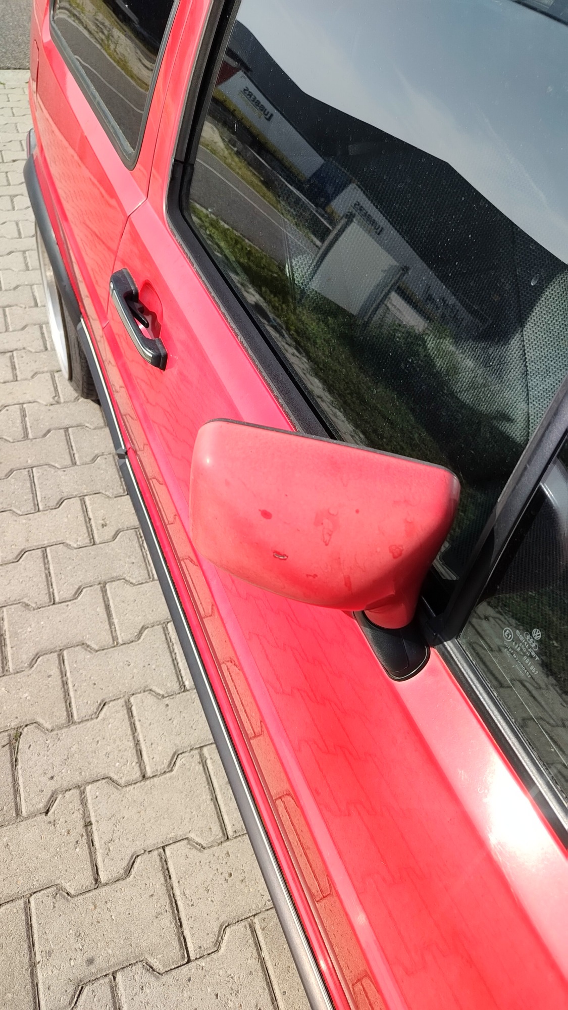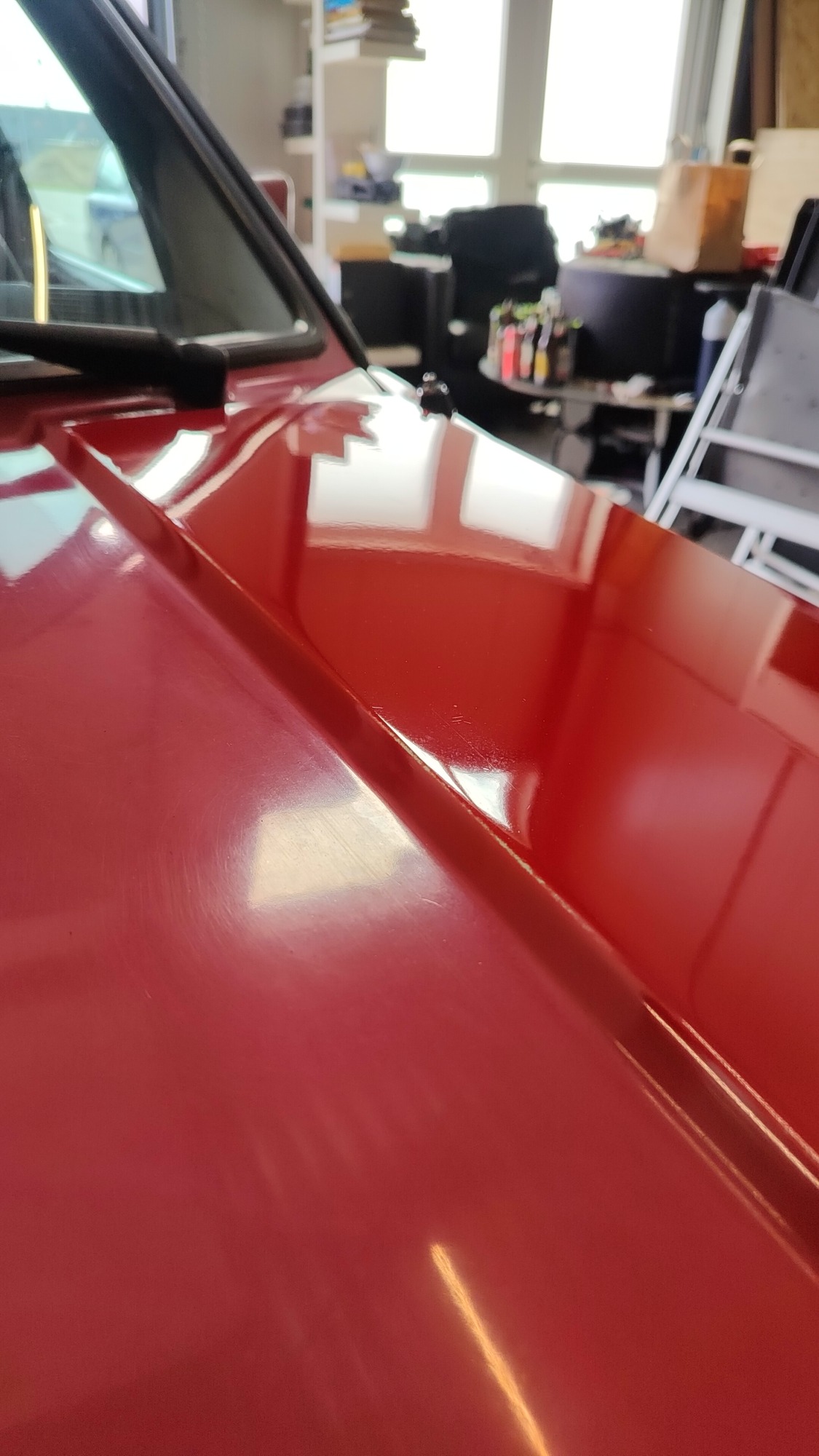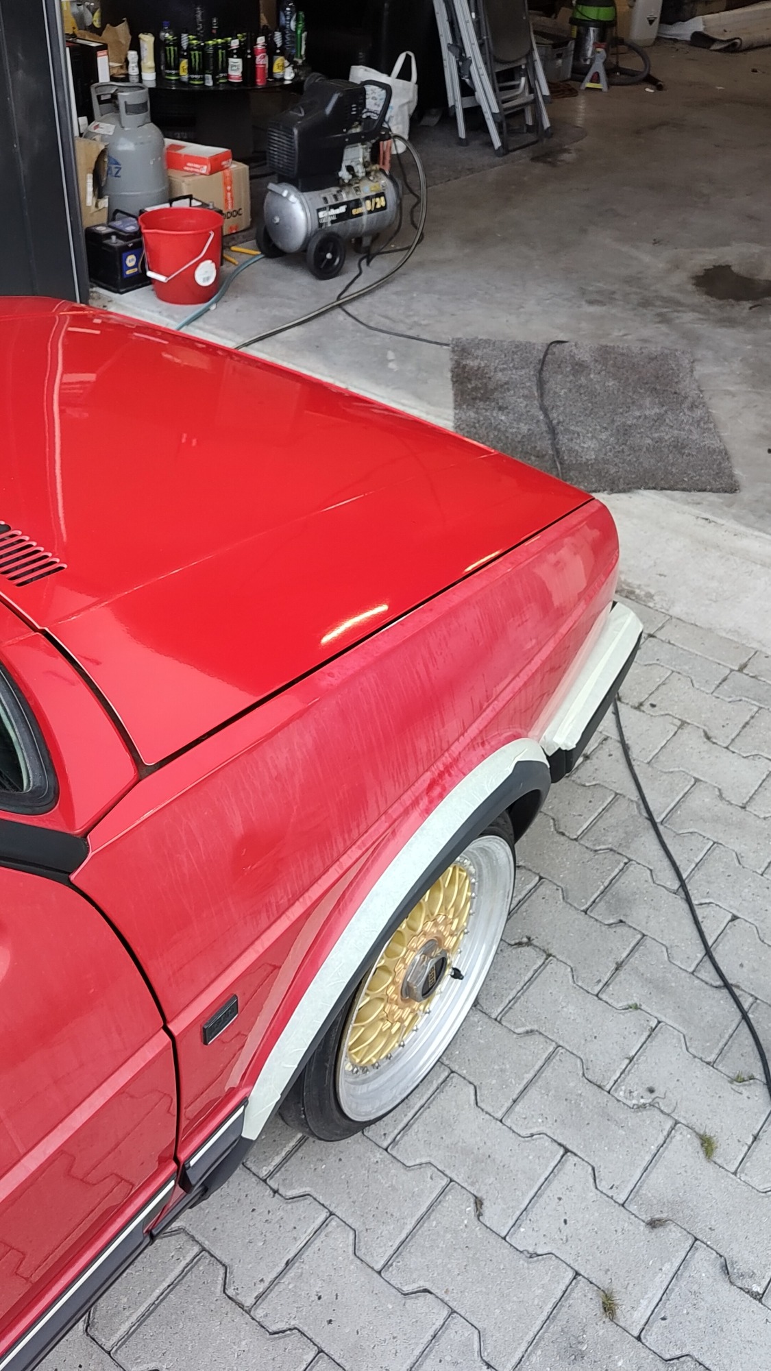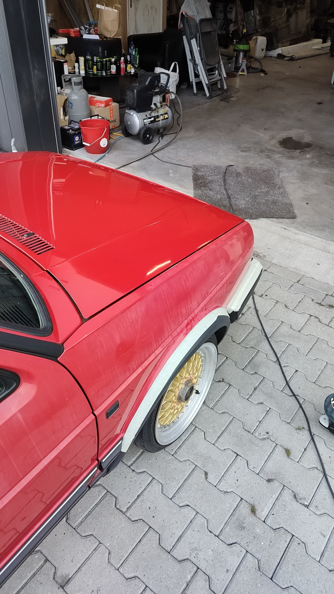 Zwaar geoxideerd, verwaarloosd en na een jaar onder een boom te hebben gestaan werd deze Golf Mk2 bij mij gebracht. Op een paar plekken had een vorige eigenaar door de lak heen gepolijst op de randen, iets wat helaas vaak gebeurd als men niet weet hoe dik de lak is en hoe je het beste gebruik maakt van het gereedschap.